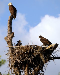 We have a pair of eagles who decided that they liked living here. They’ve shown up at their nest again but haven’t taken up housekeeping yet. They generally live here in the fall through the spring. Once they young are raised they move off allowing their local hunting territory to recover.