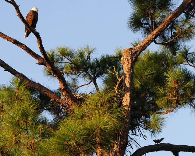 Take a look at this picture. The eagles nest is just about in the center, the eagle is at top left looking down at the squirrel on the other side of the tree. The second squirrel was directly below.