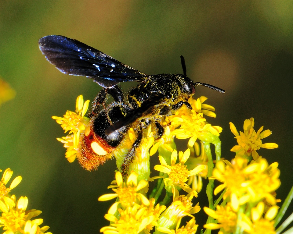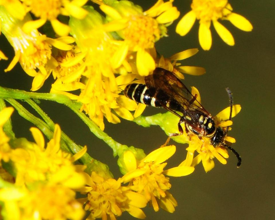The wildflowers attract plenty of different bees and wasps as pollinators. Right now, the Goldenrod is in bloom on the edge of the marshes and in addition to the usual bees, I’ve found Blue-winged Wasps and Myzinum Wasps.