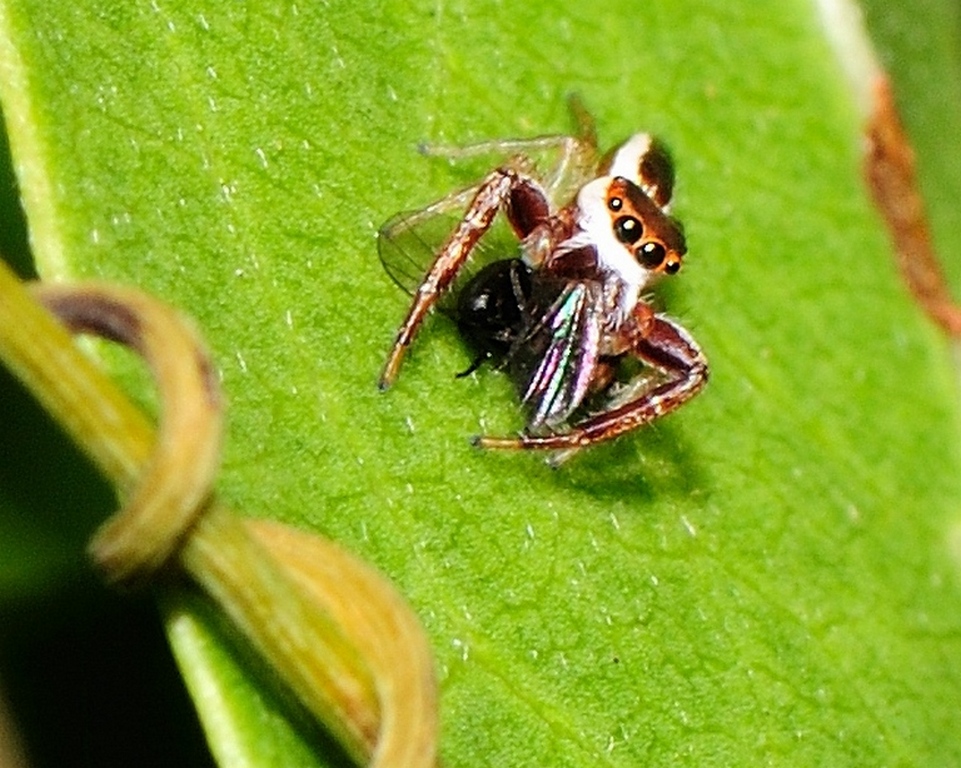 And finally, two even smaller denizens. A Dainty Sulphur (Nathalis iole) which is about an inch long and a Hentz Jumping Spider (Hentzia palmarum) which is only 3-5 millimeters in length.