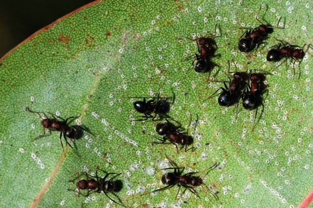 Here is another shot of Ants getting honeydew from what appear to be whitefly nymphs. This was taken in the Punta Gorda Nature Park with the same camera and settings.