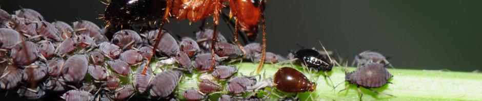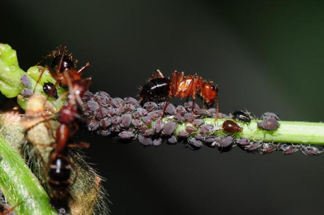 A 2007 article from the website ‘Science Daily’ gives an excellent explanation of how ants control aphids. Aphids are sometimes called Ant Cows because they are herded by ants and exude a sugary ‘honeydew’ that ants eat.
