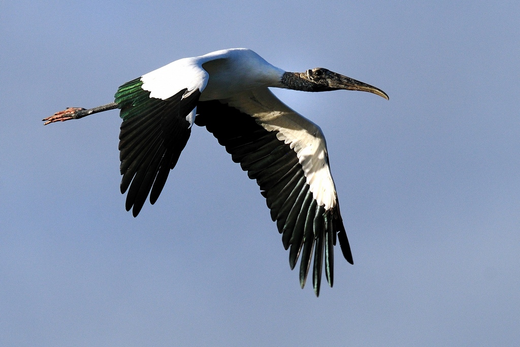 The Wood Stork is the only stork that breeds in North America. Breeding colonies are found from Florida to North Carolina. Here in Punta Gorda, there is a rookery on an island in the Peace River above the I-75 bridge.