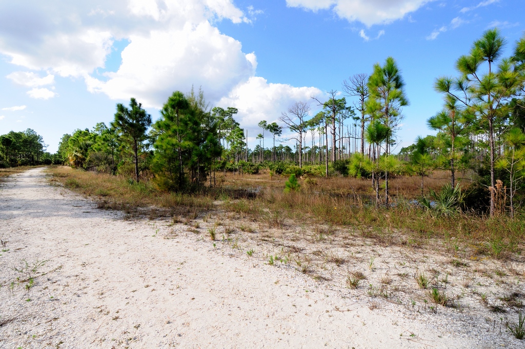 The 487 acre Charlotte Flatwoods Environmental Park is managed by Charlotte County. It is located between Punta Gorda and Ft. Myers at 15801 Tamiami Trail, Punta Gorda, 33955. The entrance is right on US-41 as you near Zemel Road. There is a paved parking area at the entrance but, you can drive through onto a hardshell road.