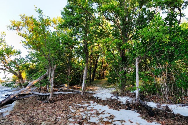 This is a closer look at the entrance to the mangroves. At this point, the path is wide and stays close to the harbor.