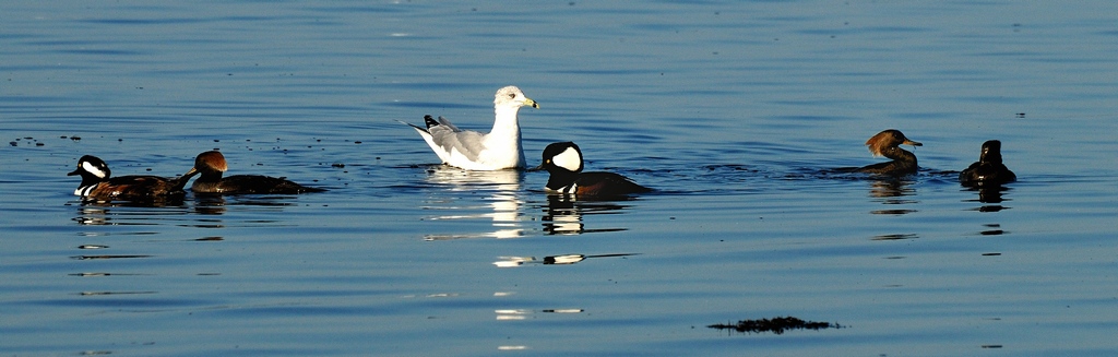 Along the way, there are side paths which lead to the harbor or into the mangroves. The paths to the harbor provide some natural cover for shooting the shorebirds and other waterfowl. This morning, I found that the Hooded Mergansers had arrived and were feeding in the shallows with gulls and egrets.
