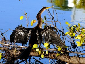 But, it wasn’t the only bird near the dock. Below it, drying out from a dive was an Anhinga.