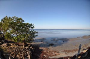 Each new lens is an opportunity to do a little more and learn a little more. I took a 10.5mm Fisheye Nikkor to the park this morning to see what I could get out of it. The tide was well out and aided by a north wind allowed the shore path at Ponce De Leon park to be navigated easily.