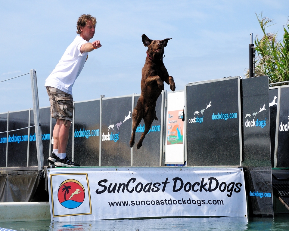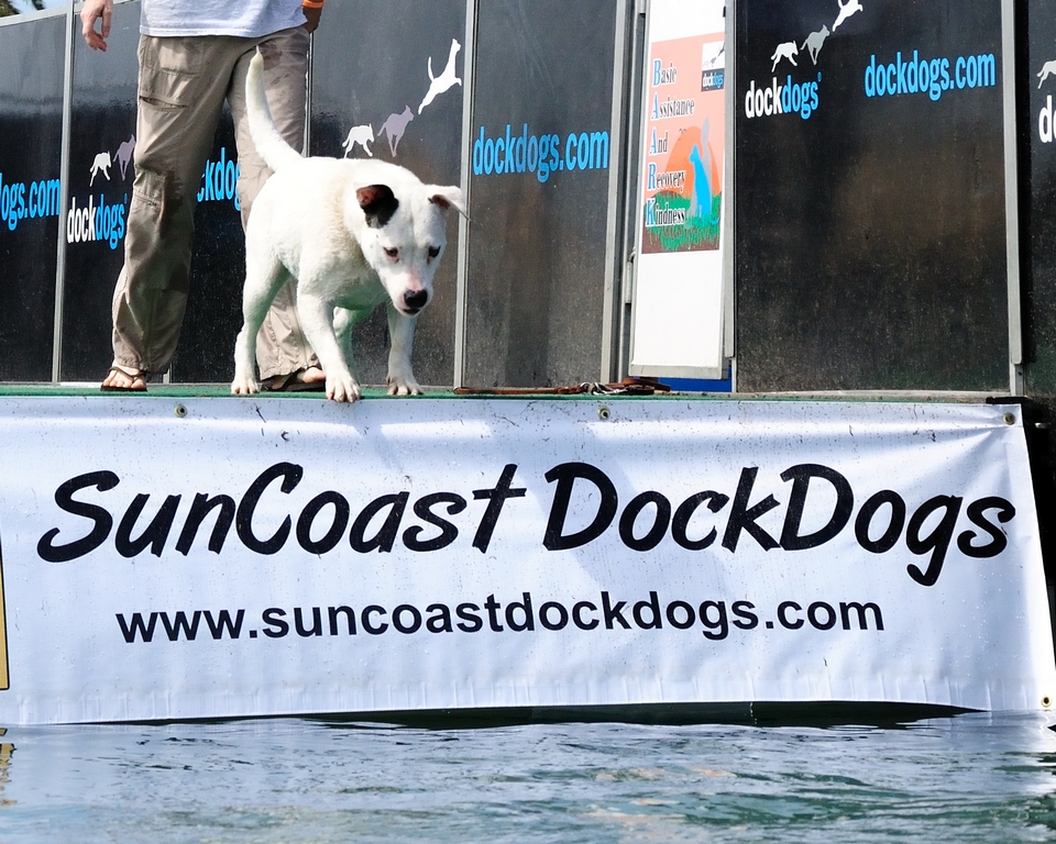 As a part of the Punta Gorda Barbecue Festival we had a dockdogs competition run by Sun Coast Dockdogs. In these competitions, dogs run down an ‘dock’ and jumped into a four foot deep pool for distance. It was open to a number of classes so there were large and small dogs competing. Another event was a time to retrieve where the target was placed at the end of the pool and the dogs were timed. I’m not sure who the winners were but, boy, did everybody look like they were having fun.