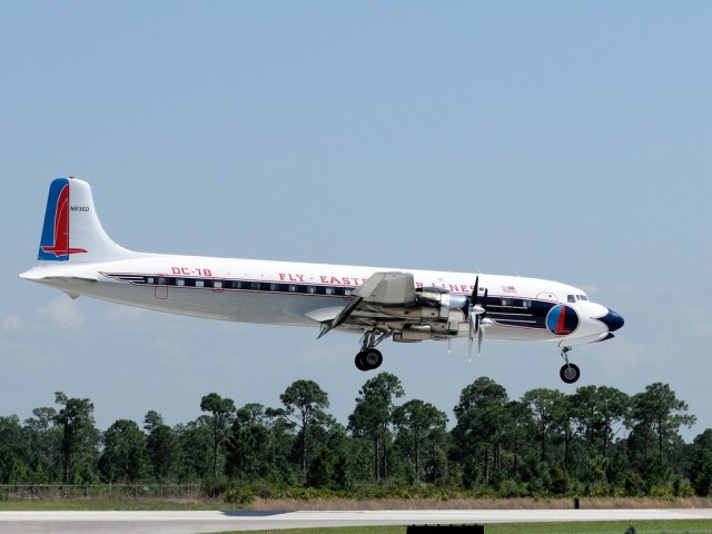 This weekend, the Florida International Air Show rolls into town. I went over to the airport today to see what might be going on that could be worth photographing. As soon as I got there, I noticed an old DC-7B in Eastern Airlines livery doing a visual check along the runway before making a landing. That gave me just enough time to get to one of my favorite spots to get this shot.