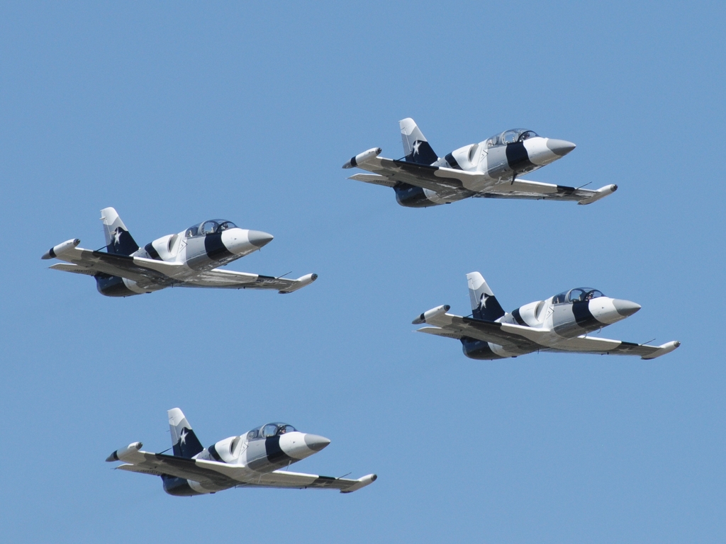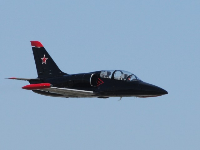 This one ran solo passes while another 4 L-39s did formation work. At the end, all formed up with the black one in the lead. Here are a couple of the formations.