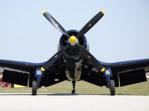They had one of my favorite warbirds at the Airshow this year. The F4U Corsair. It was on static display and flew with the B-25s Panchito and Killer Bee in the simulated ground attack runs.
