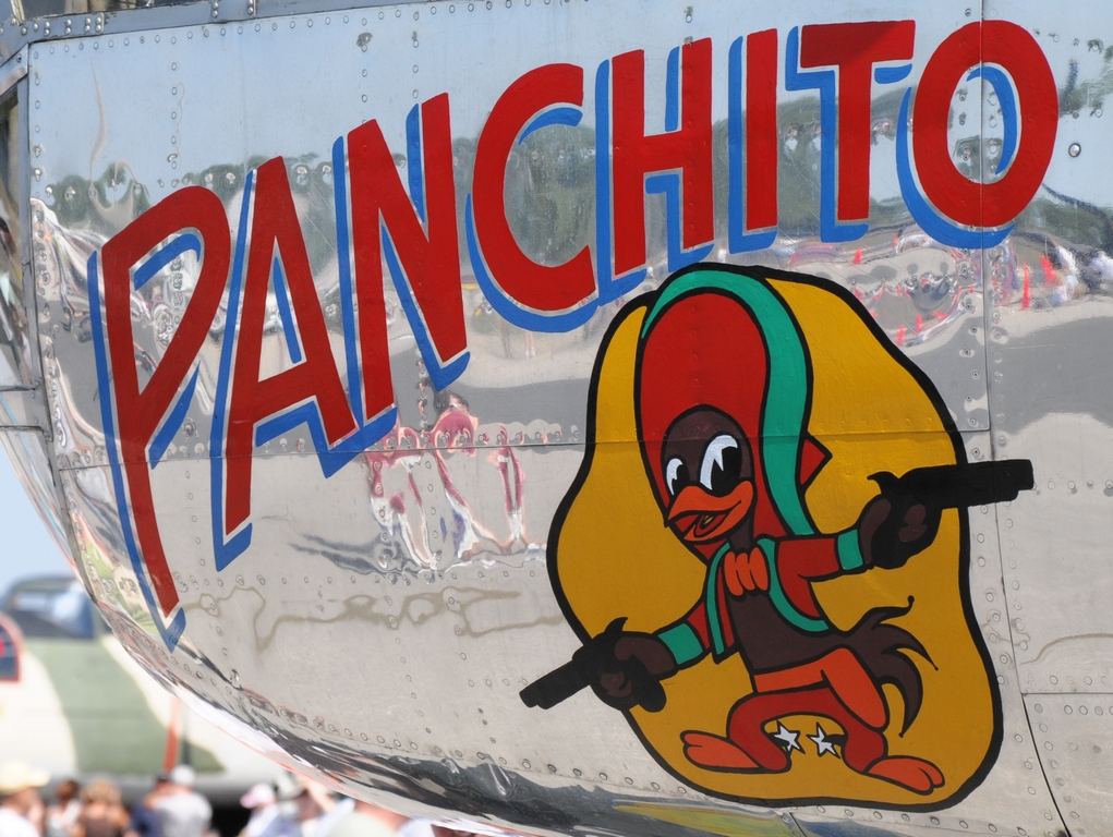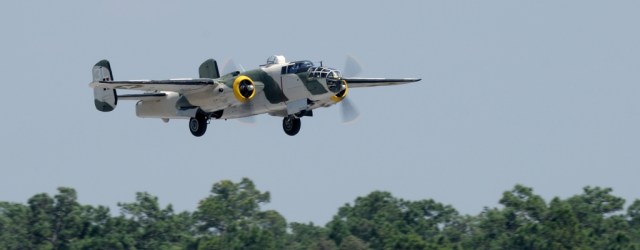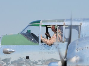 Unfortunately, the show was pretty busy with the Doolittle Raiders so shots of the static aircraft were difficult. Panchito and Killer Bee were moved to the south ramp prior to the ground attack demonstration. They can be seen together in the image at the top of this entry. I thought I wouldn’t see Barbie III in flight but, Monday morning, I heard the engines and got a distant shot of her being escorted out of town by a T6 also decked out for ground attack.