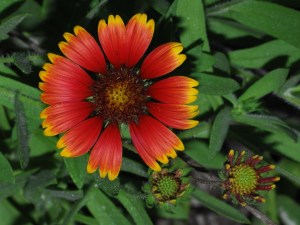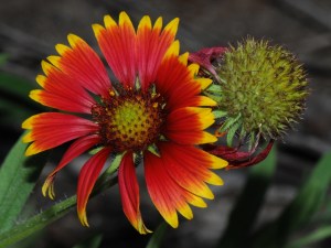 This is wildflower season though, so I put the 105mm Micro-Nikkor on the D300, stuck my SB-800 in my pocket and started my walk. I quickly discovered that the flash batteries were pretty much dead and recycle times were unacceptable. I didn’t have any spares with me so I put the compact SB-400 on the camera instead. Here are a couple of Indian Blanket flowers – Gaillardia pulchella. Folks up north have to buy these for their gardens.