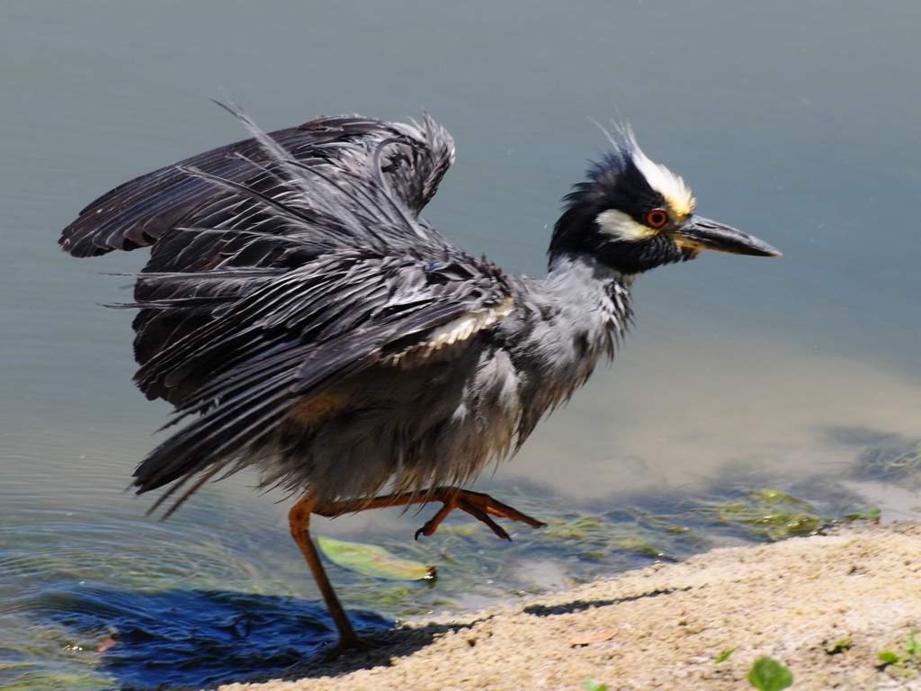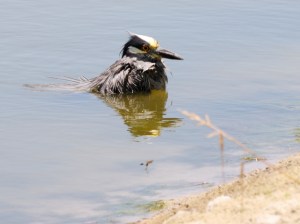 Last week, I was headed down to Ponce De Leon Park whenI noticed this Yellow Crowned Night Heron cooling off in the Vivante pond. You don’t often see wading birds actually immersing themselves like this but, I’ll just bet the water felt nice and cool. Originally, he was in completely up to his neck with only the head showing but, when I got a little closer, he gradually lifted himself out of the water for a shake and a little run along the shore before resuming his normal standing, but slightly damp pose. As usual, you can click on the picture for a larger view.
