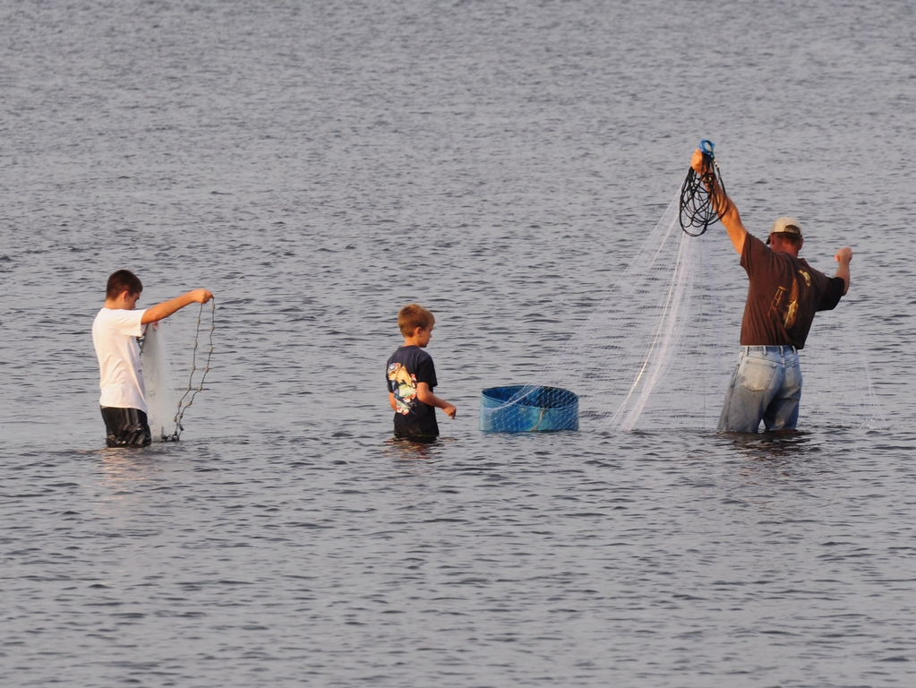 This morning dawned nice and cool, perfect for a walk in Ponce De Leon Park. It wasn’t too early for the fishermen and I found this fellow and his sons casting nets off the beach. Along the seawall, the Morning Glories (Ipomoea purpurea) were in full bloom.