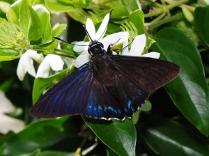 But, they weren’t what caught my eye. It was the butterflies. This Mangrove Skipper ( Phocides pigmalion ) usually has more blue on it’s wings but, this one seems to have gotten some wear.