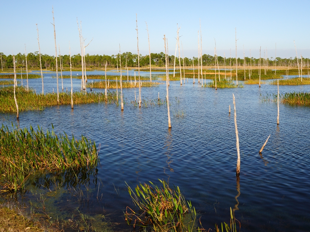 The marshes soon start to show some hammocks rising as the land does. After a while, you end up in typical pine flatwoods and eventually reach the closed gate at Route 31. Along the way here you will see that Florida is still cattle country.