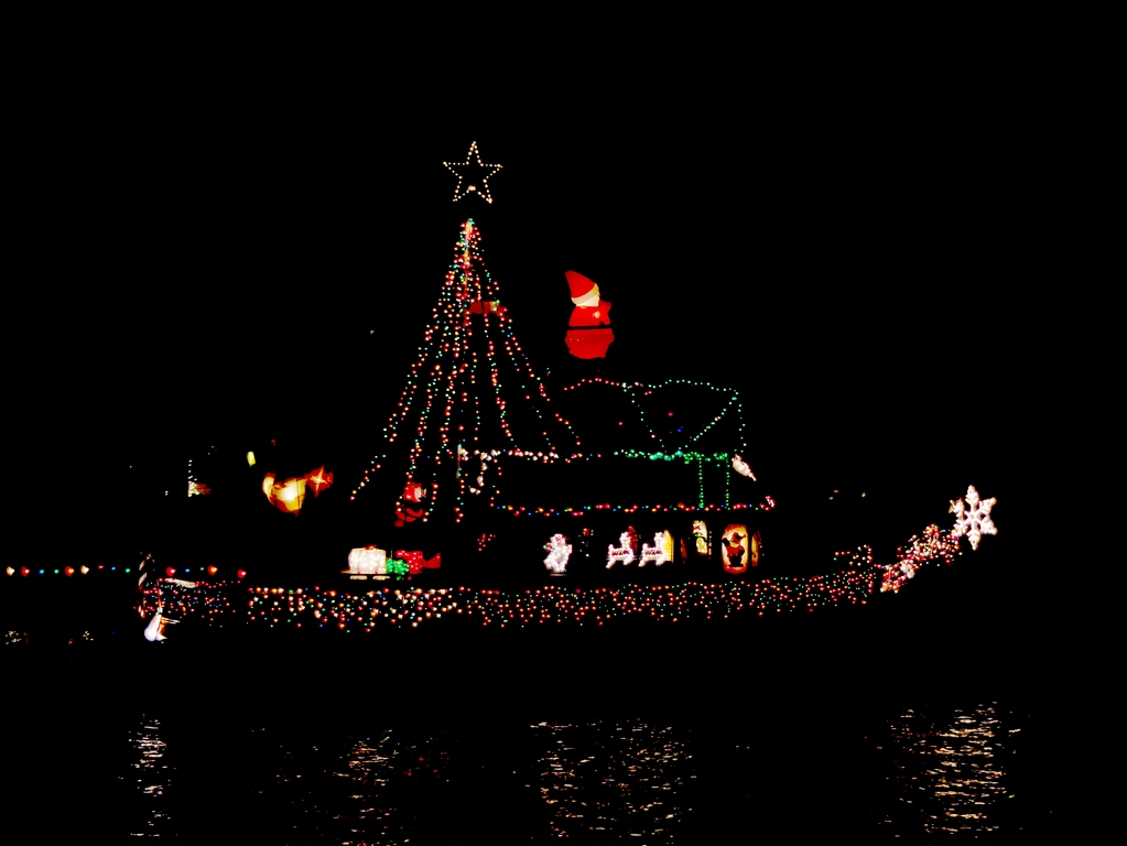 Pictures like this are a challenge because the lights are easy to see but, if you allow the automation to select your exposure you end up with muddy pictures or, end up with such a slow shutter speed that subject motion turns all your lights into streaks. Since these are all boats in motion, their wakes make the water a little choppy and the motion can be multi-dimensional.