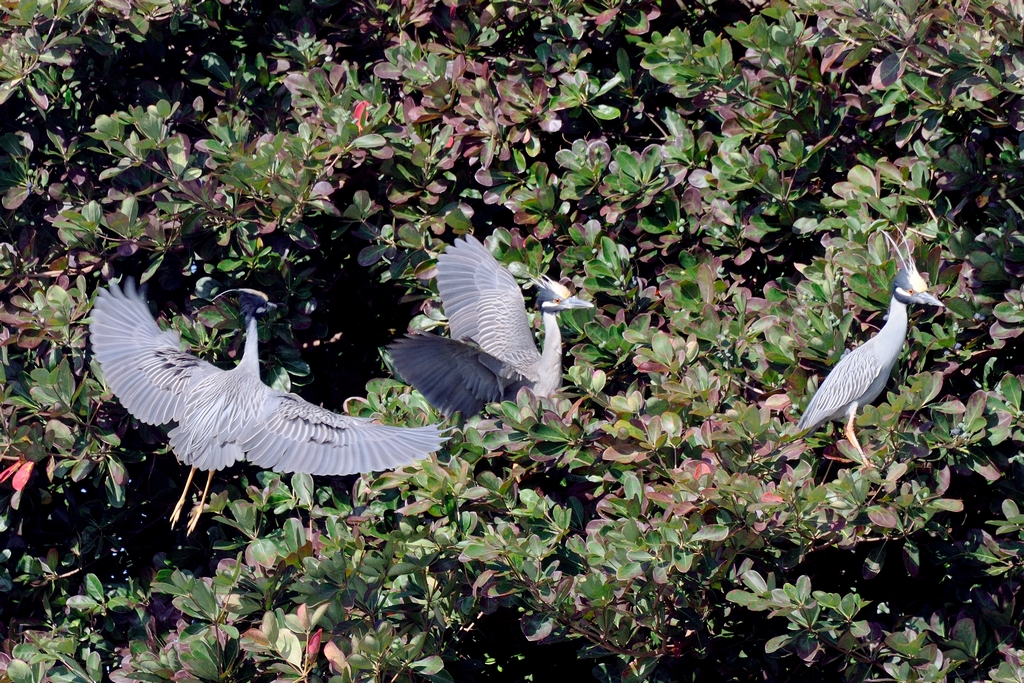 Today, a neighbor called me to tell me that there were four Yellow-crowned Night Herons standing on their pilings.