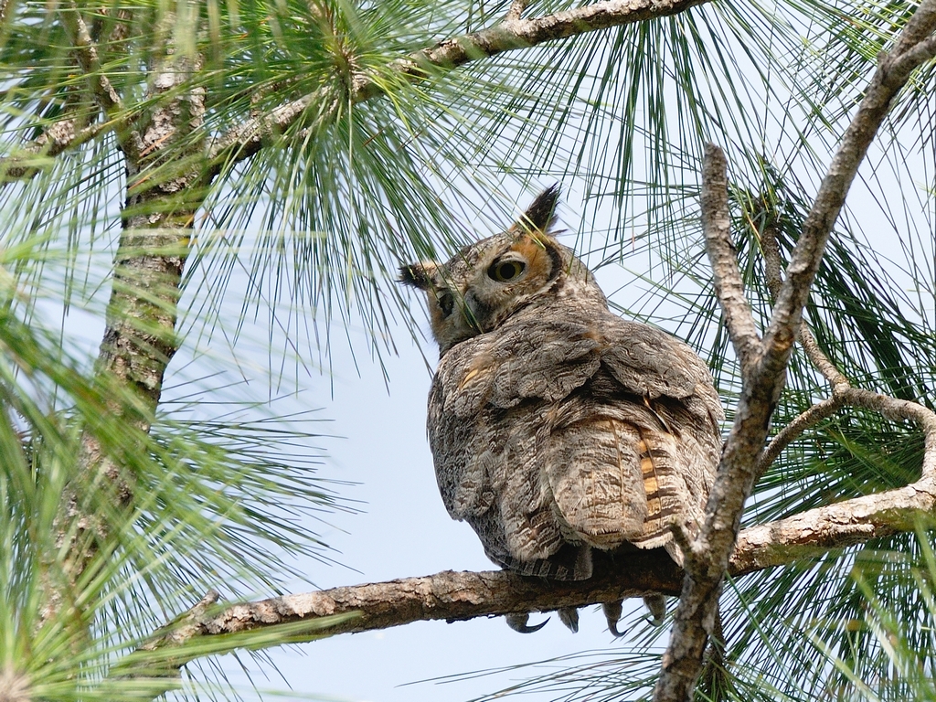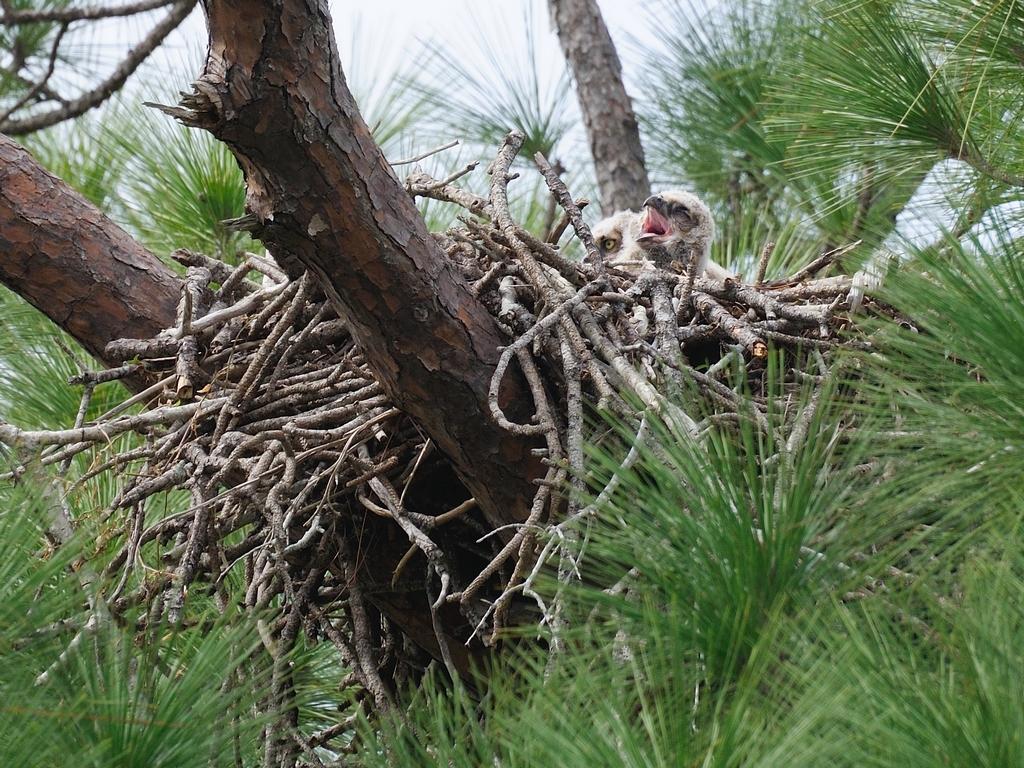Just a few shots of the Great Horned Owls which have taken over the eagles nest next to the History Park. The babies are getting bigger and should be becoming more active over the next couple of weeks. Once that happens, we should see them moving about more in the nest tree. But, here are Mommy, Daddy and a few shots of the kids. As usual, you can click on any individual picture to see a larger version.