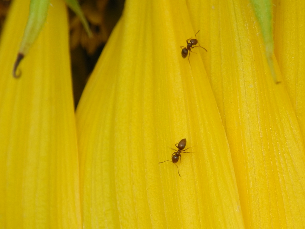 I then took a shot of sunflower petals which had ants running all over it. This combo is tough to track moving insects with. The optical viewfinder isn’t any help and my tracking skills with the rear screen leave a lot to be desired. The next shot is an emerging Black-eyed Susan. The bud has just opened to the point that the petals are beginning to show.