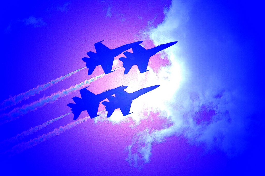 Well, let’s have some fun with this one. Last year I went to my local airshow and was shooting the US Navy Blue Angels precision flight team. As usual, you get a lot that aren’t too good. In this case, I was trying to catch the team just as they broke from a diamond formation. The usual shots are kind of static but, the breaks and reforms offer some opportunities for shots I like. Here is what I got: