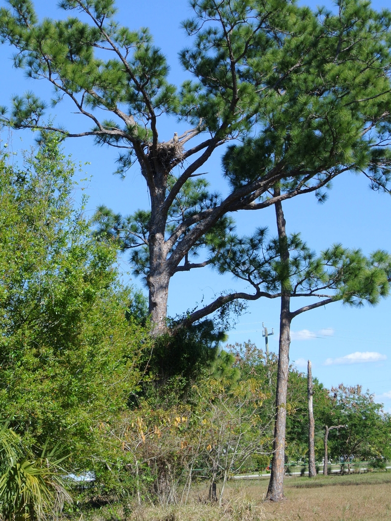 The Nikon 1 V1 isn’t the best camera for catching birds in flight but for general birding and behavioral shots it works very well. I use it with it’s own Nikkor 1 30-110mm telephoto zoom and the Nikkor 70-200mm f2.8 VR on the FT-1 adapter. Because the CX format has a 2.7x crop factor, the 30-110mm is the equivalent of an 80-300mm on a 35mm camera. The 70-200mm becomes a superzoom covering the 35mm equivalent of 190-540mm and still remains an f2.8. Here are a few shots with both lenses. The Great Horned Owls (Bubo virginianus) are nesting in a disused Eagles Nest next to the Punta Gorda History Park. You can see it here in this wide view.