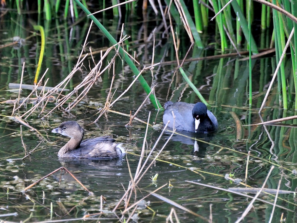 There were a pair of them in the reeds near the southern boardwalk hanging out with some American Coots. On the other side of the boardwalk was a sleeping duck who had one eye open to see what I was up to.