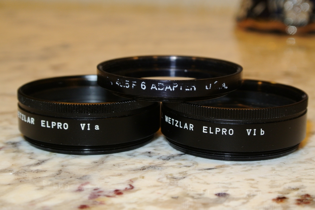As shown, the V1 is on a small tabletop tripod and is wearing the 30-110mm at 110mm with both the ELPRO VIa and VIb installed. The picture on the right shows the two ELPROs and the Tiffen 40.5mm to Series VI step up ring.