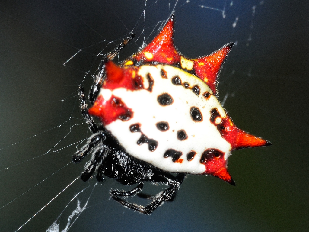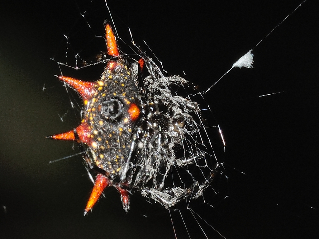 These are interesting little spiders because they look like a crab. Generally small they spin their geometric webs in the mangroves and wait for lunch to arrive. They generally sit in the middle of the web and I sometimes think they should really be called flowerlike Orb Weavers because they are about the size and coloring of a lot of the mangrove flowers. But, the shell and spines make them look crablike up close.