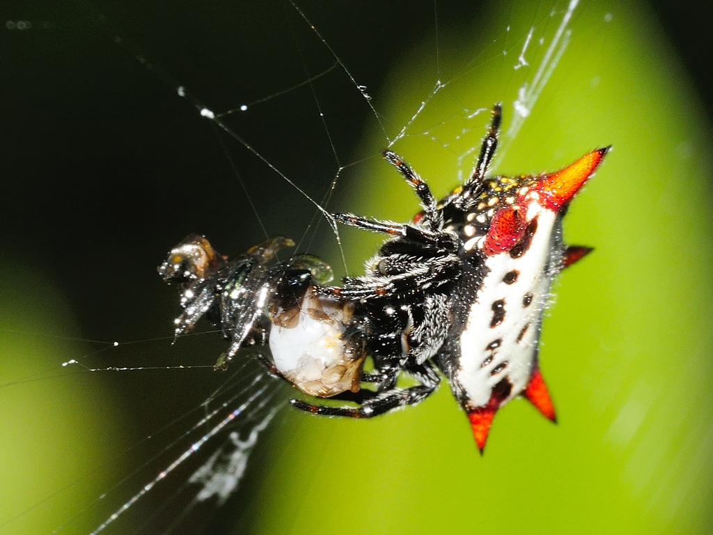 As you can see, the top of the spider is colorful while the bottom is almost completely black. This final shot shows one with lunch.