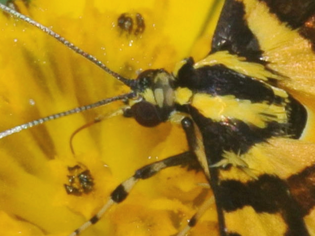 I didn’t realize I had this one. I was trying to get a shot of this tiny moth and it wasn’t until I was home and post processing when I realized that it had already been attacked by a small spider that was riding along on it’s left wing. This is the same shot with a very tight crop to show the spider in the second image.