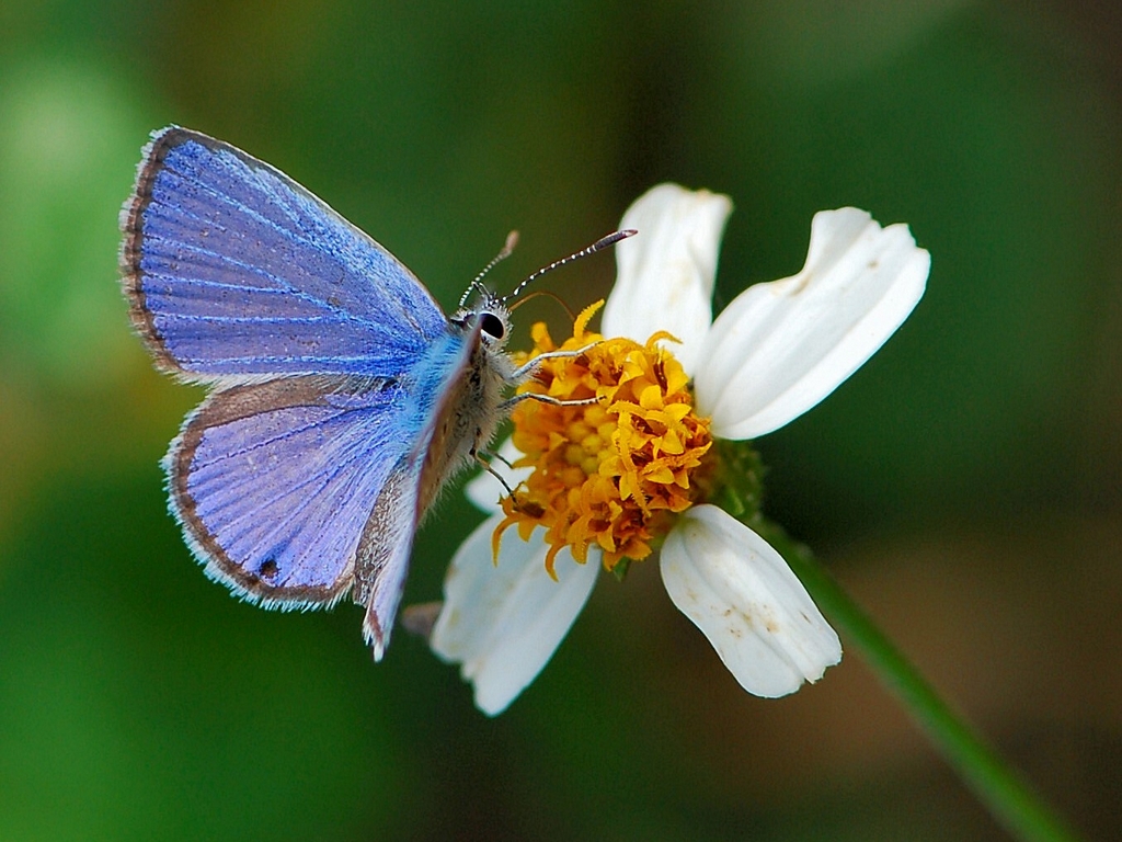 This is another small butterfly, similar to the Grey Hairstreak I showed in May. It’s about the same size as can be seen here where a Ceraunus Blue is sharing lunch with a Hairstreak. You can see the blue of the wing top where there is a slight seperation.