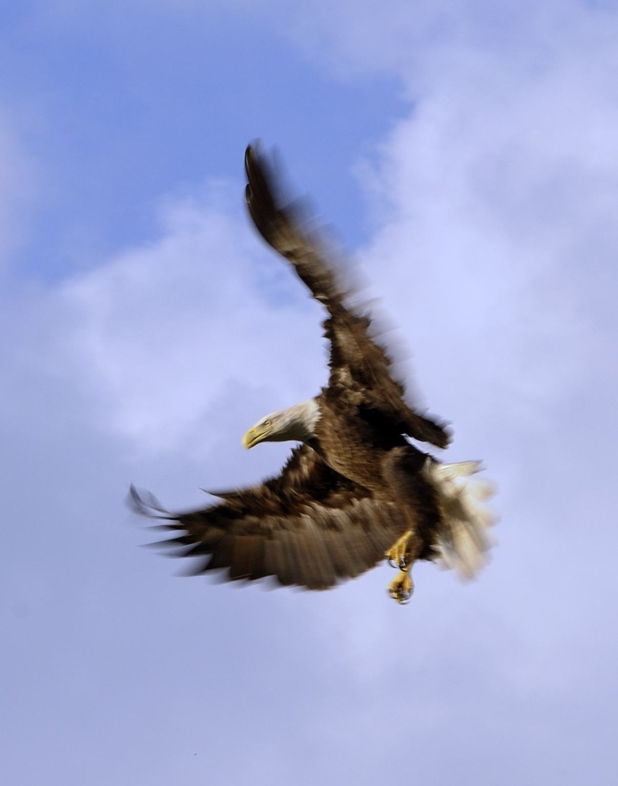 and didn’t realize at the time that if was from a picture from a post in 2007 in regard to our local eagles.  That was in regard to their first nest.  It was destroyed in a windstorm and they moved to another nest.  It sure was a great place to take pictures though.  One of my favorites is this accidental blur.  I had just arrived and was setting up when I saw one of the parents preparing to land on the nest.  No chance to check setting, I just flipped the camera up and started shooting.  Ooops, the shutter speed was too slow to stop the action but, the blur showed the action better than a more static image would.
