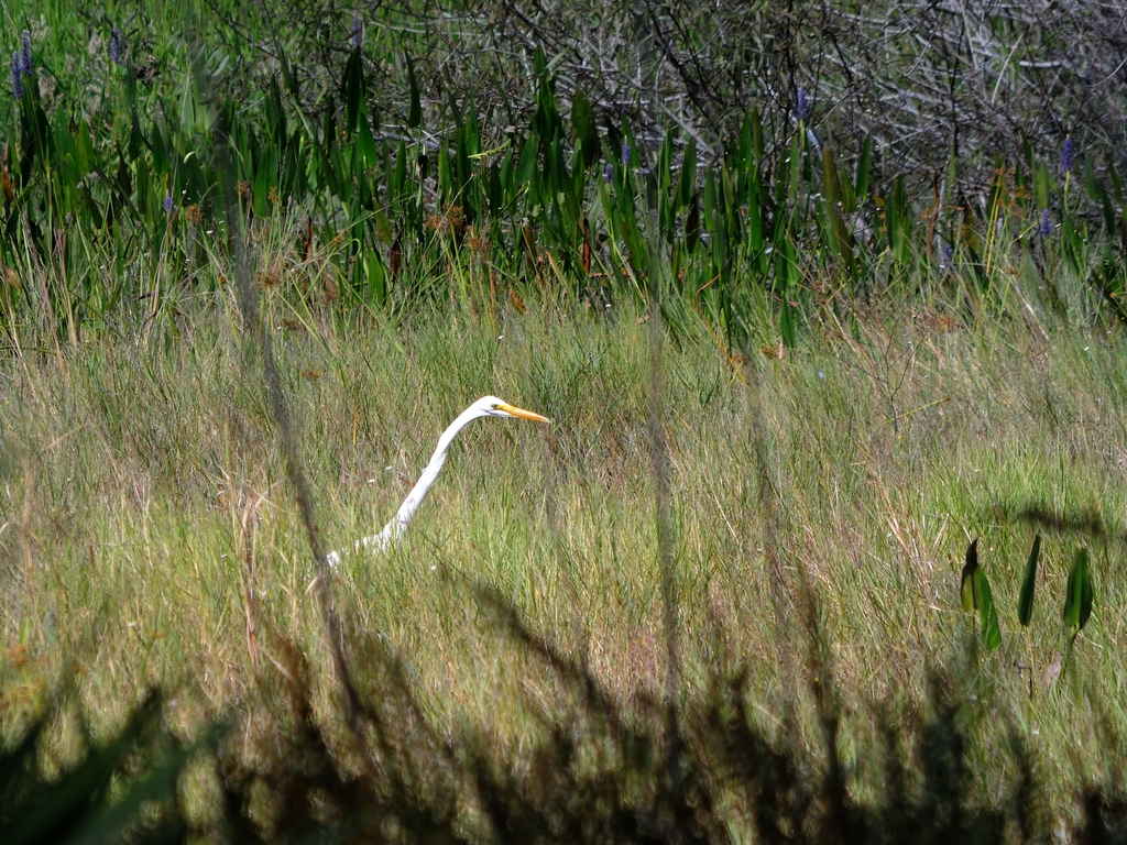 It was also mid afternoon and there wasn’t a lot of activity. The preserve is very handicap accessible with a hard shell path from the parking lot that runs in a loop around a marsh. The Great Egret above was seen from the path. There is a boardwalk over the marshy area and an observation blind just past the boardwalk. Unfortunately, that was closed due to a swarm of bees on the day I was there. I found a small alligator in the pond on the north side of the parking lot and a lot of wildflowers in bloom. Here is a small sample.