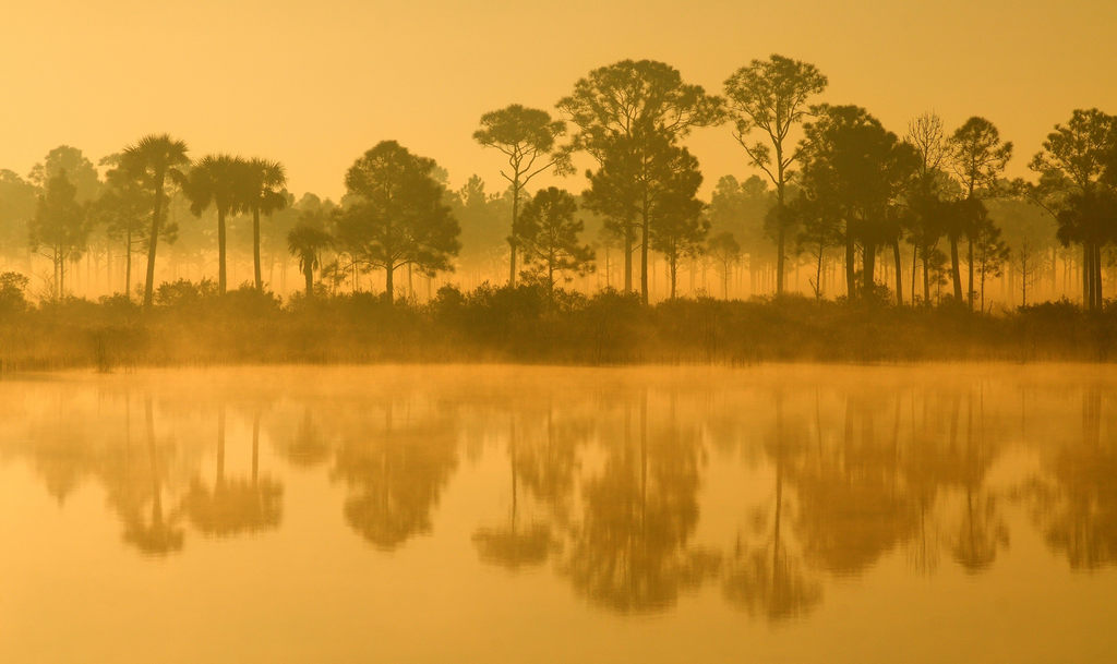 Just south of Punta Gorda is the Babcock-Webb Wildlife Management area. Quite a while ago I went out to shoot the mist off of the marl ponds and Webb Lake. I had processed a few of those shots as Misty Morning at Marl Pond Today, I was looking back to clean up some old directories and ran across those shots. In with them were a few that had looked less interesting at the time. Today was rainy so I had some time to play with them a bit. I had seen some traces of color in the images from the lake but they seemed muted since the sun had risen more and the mist was more grey. I did see a bit of color in them though so I decided to increase the saturation a bit to see what I got. I kind of like them.