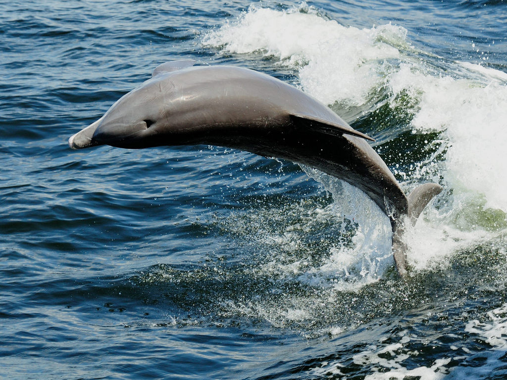 Porpoises frequently meet boats after they clear the Ponce De Leon Park Channel and surf along on the bow wave. We had the pleasure of having one do just that as we left. In addition to swimming along, this one decided that it was time for some acrobatics.