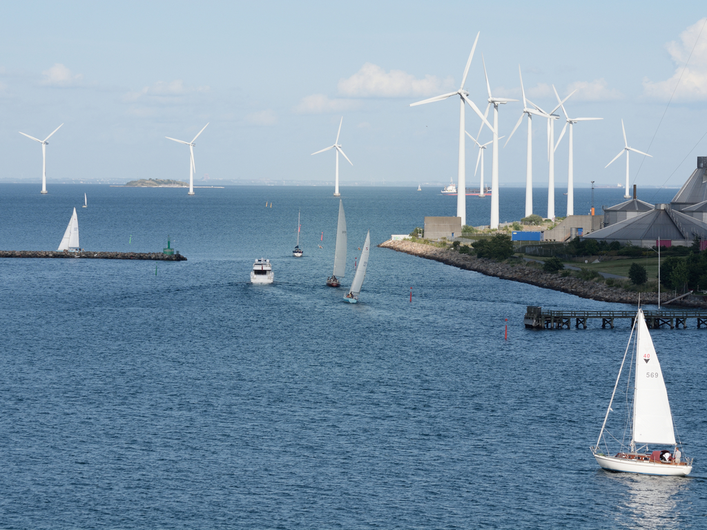 We’ve just returned from a trip to the UK and a cruise in the Baltic Sea. I’ll be posting some shots from those areas as I get along processing them. Here are a couple taken from our Balcony on the Holland -America Ryndam in Copenhagen. We were on the harbor side as docked and I could see a lot of small sailboats heading out the channel into the sailing basin beyond the fort. The contrast between sails for propulsion and power generation was too good to pass up.