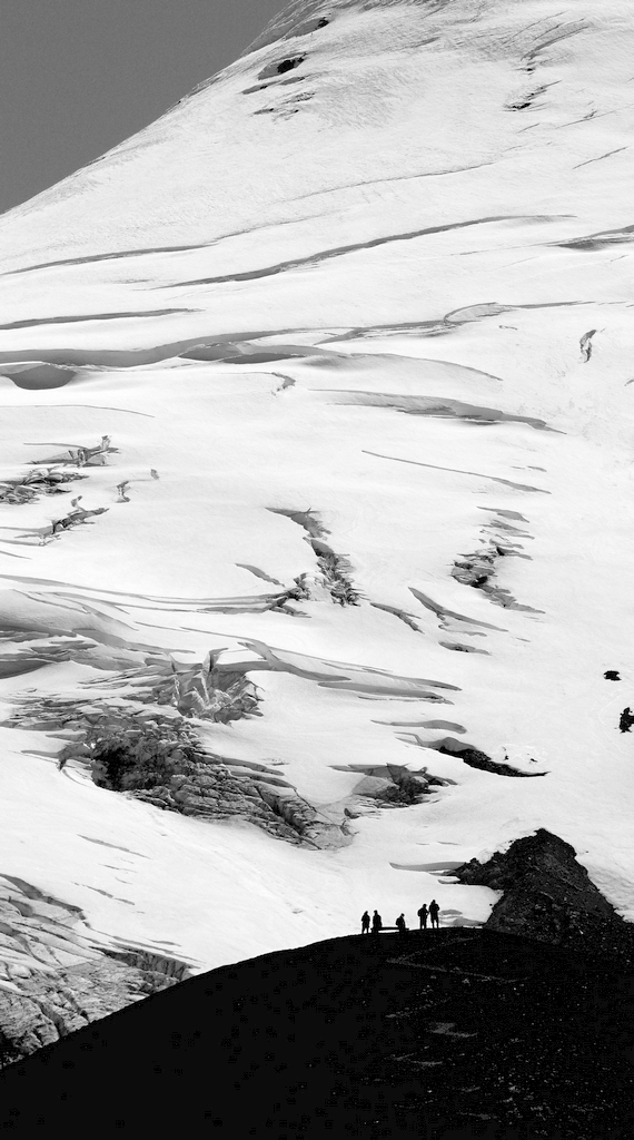 This was taken on a day trip out from the Zanndam to a ski area on Volcan Osorno. We had the option of walking or taking the lifts. Since we were stopped for an hour and the ski lift was a half hour ride each way, I elected to walk around and up the mountain looking for some decent shots. Most of it was just views out over the lakes area but when I turned and looked up the mountain I found that I had walked nearly to the end of the first lift and I could see those who rode. The snow cap on the mountain made for an interesting silhouette.