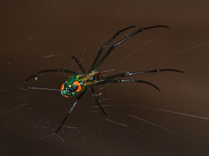 The spider on the right is an Orchard Orbweaver – Leucauge venusta which is sometimes called a Venusta orchard spider.